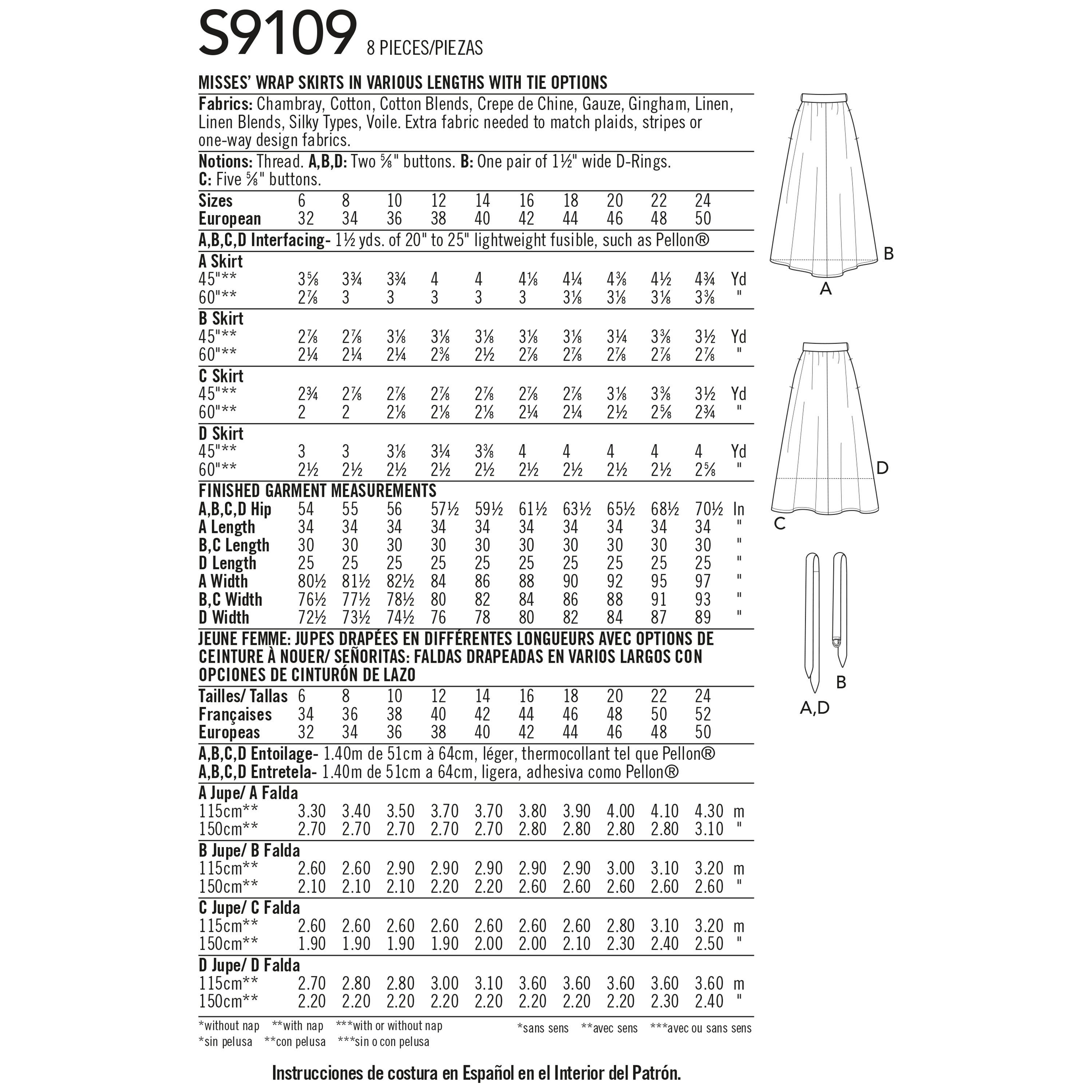 Simplicity Sewing Pattern S9109 Misses Wrap Skirts In Various Lengths With Tie Options 9109 Patterns And Plains