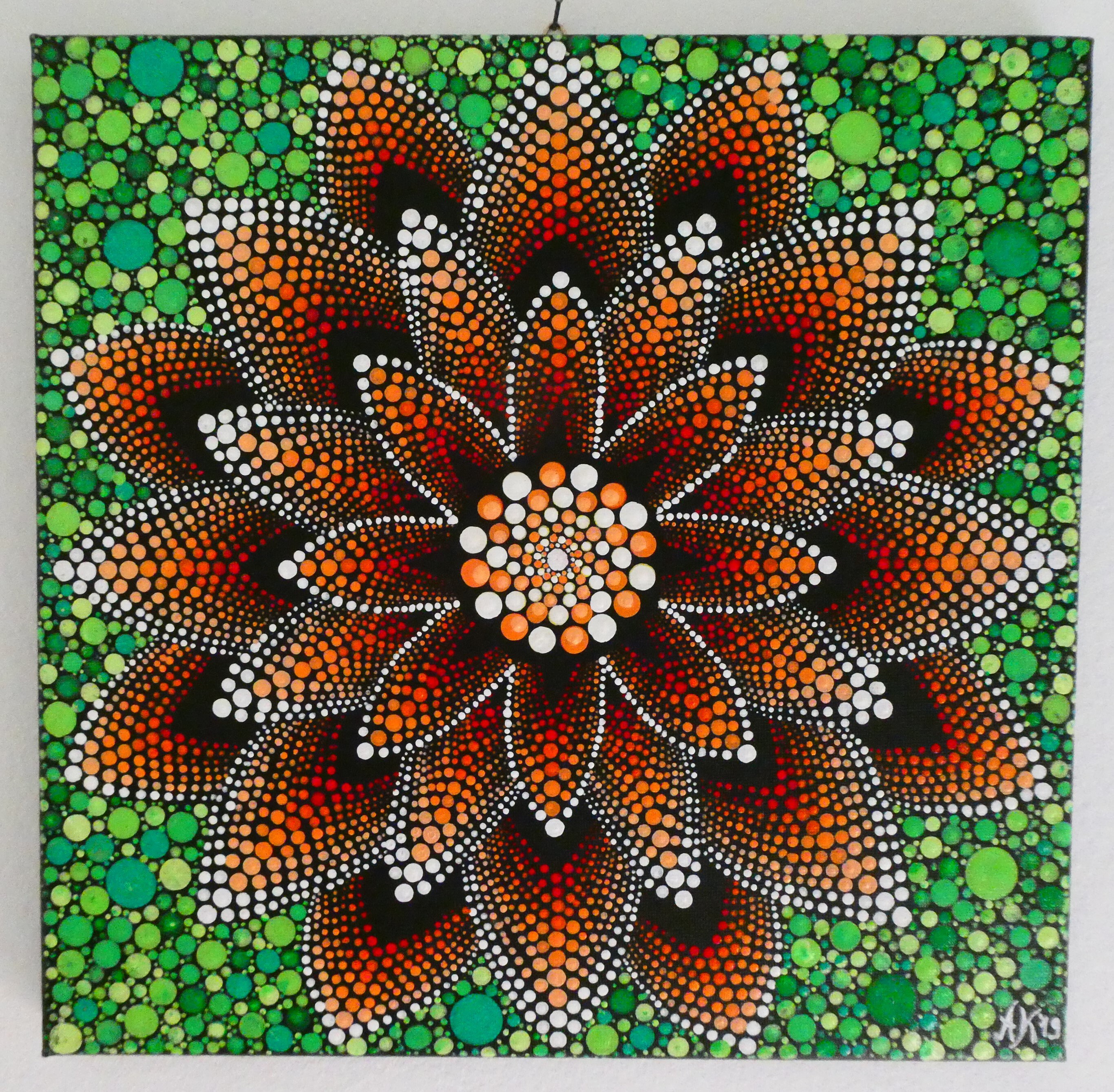 Mandala Flower 30 X 30 Cm Orange Dot Painting Etsy Canada