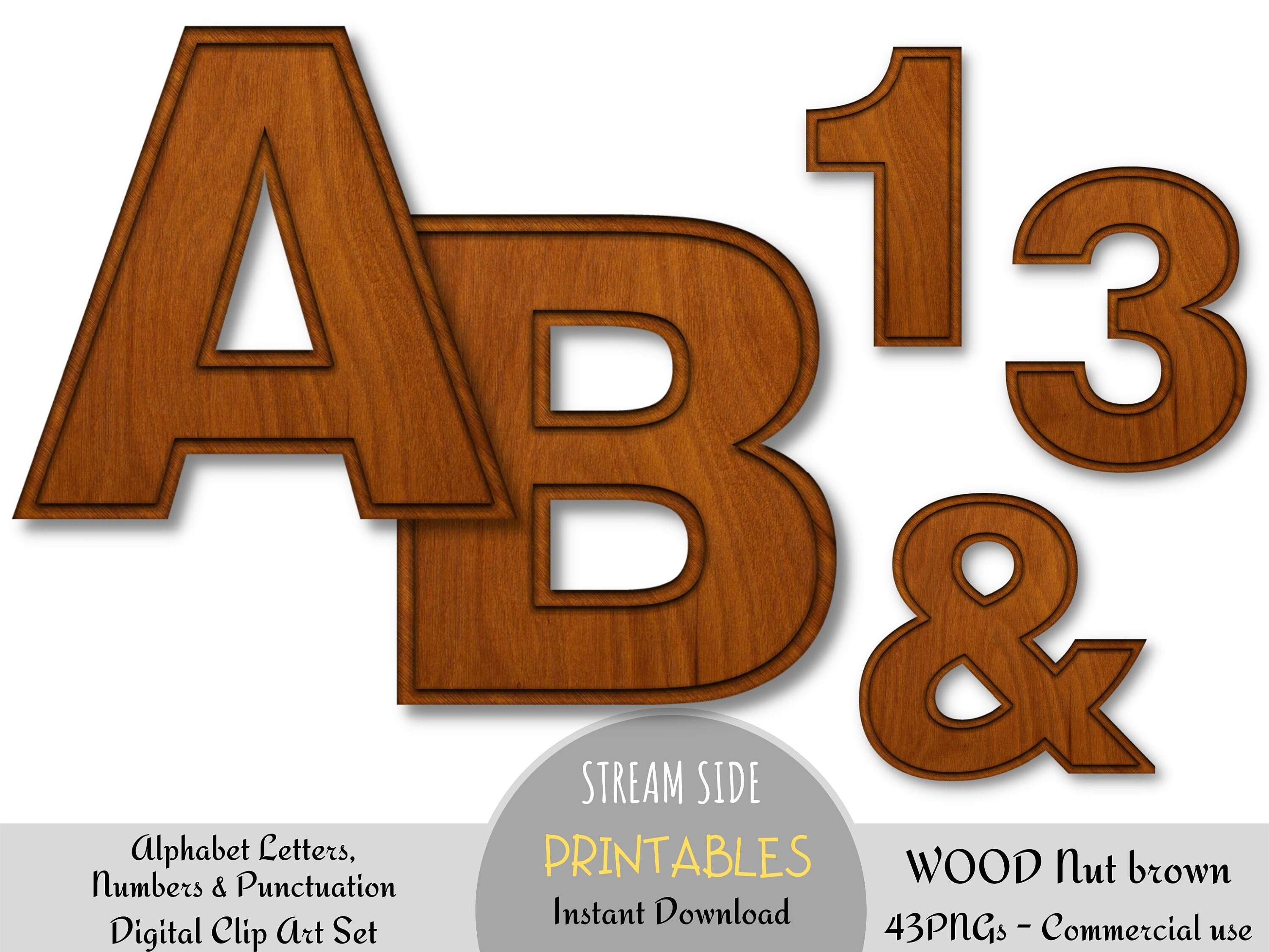 Nut Brown Color Wood Alphabet Set Letters Numbers Etsy